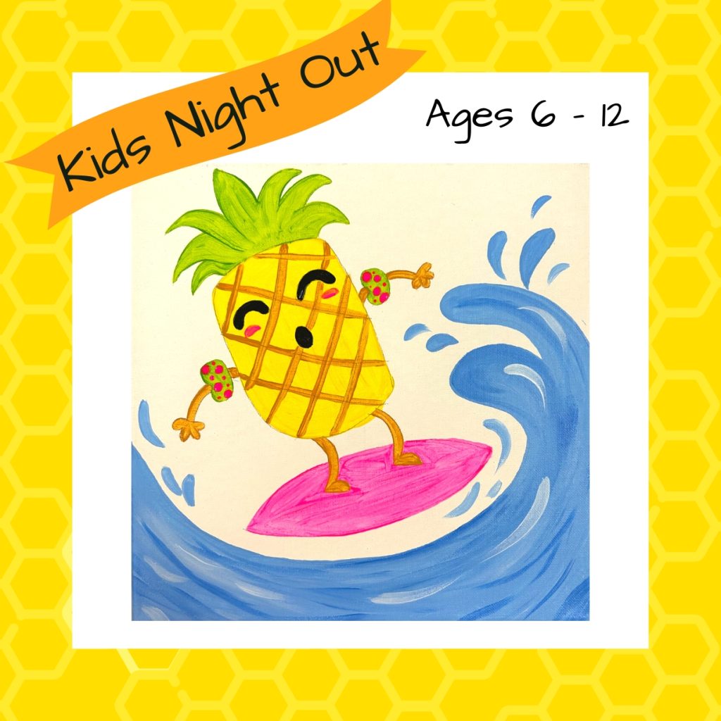 Kids join us for a fun night out! We will be painting this sunset scene on a mermaid shaped board, using sparkly tiles to create the little mermaid’s friends! Afterwards we will play bingo where you can win fun prizes! Each child attending will also be sent home with a small goodie bag.